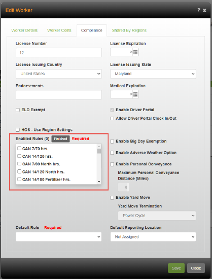 - If you are eligible, you can now enable the Canadian 14/180 Fertilizer Hrs rule for a region or a worker.